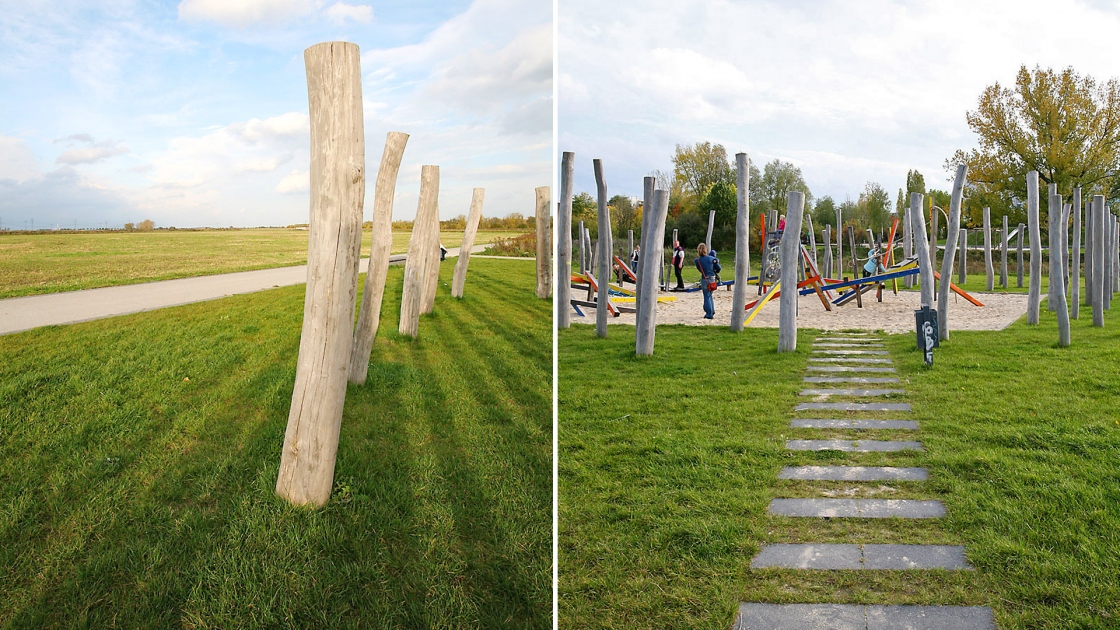 Wir haben die harte Kante der unmittelbar an die Freiflächen angrenzenden Großsiedlung betont und setzen ihr eine räumlich reich strukturierte Landschaft gegenüber, die die Weite nicht einschränkt, sondern im Gegenteil ständig neue Ausblicke und Panoramen inszeniert. Erst durch die Zerklüftung und Differenzierung entstehen Räume, in denen sich der Mensch wohlfühlt und die vielfältige Nutzungen zulassen.