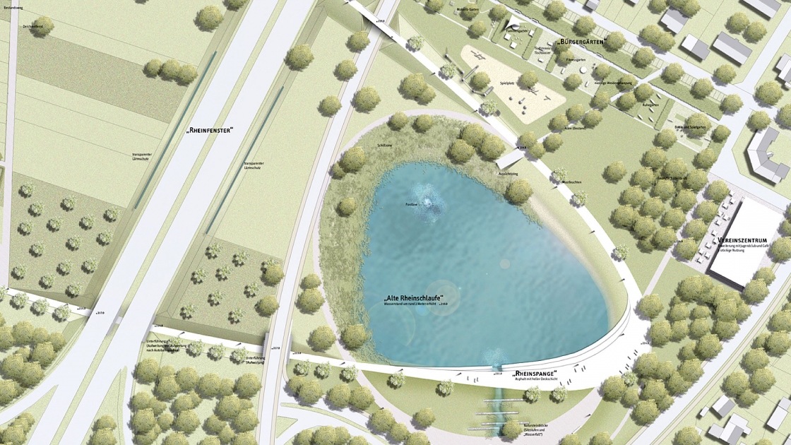 Vorrangiges Ziel ist es deshalb, die Trennung Neuenburgs vom Rhein durch städtebauliche und freiraumplanerische Mittel zu überwinden. Der Rhein soll wieder sichtbar, zugänglich und erlebbar werden, und die Rheinauen für die Naherholung erschlossen werden. Mit den Planungen zum „Rheinbogen“, der Autobahnüberbauung „Alter Zoll“ und den städtebaulichen Planungen am Kronenrain sind wichtige erste Schritte erfolgt.