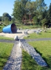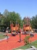 Der angrenzende Sportplatz wird hauptsächlich von der benachbarten Grundschule genutzt. Die Schulkinder wurden in Workshops in die Planung einbezogen. Der Platz beinhaltet ein Kleinspielfeld, eine 50-m-Bahn, eine Sprunganlage, eine Gymnastikwiese und eine Zuschauertribüne. Eine große Pergola markiert den Zugang zum Sportbereich und dient gleichzeitig als Unterstand und Treffpunkt.