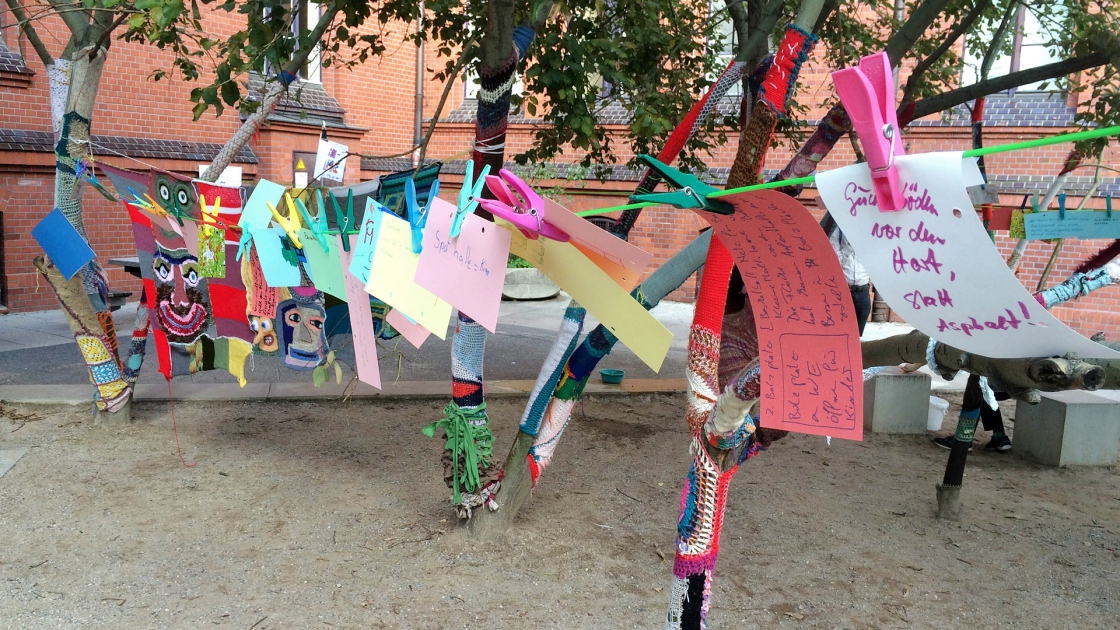 Im Rahmen eines umfassenden Beteiligungsprozesses kristallisierte sich bei den Kindern der Wunsch heraus, sich bei der Gestaltung der Freiflächen von den Traum- und Fantasiewelten des Namensgebers der Schule, dem spanischen Maler, Grafiker und Bildhauers Joan Miró inspirieren zu lassen. Seine markante Bildsprache aus Linien, Farben, Zeichen und Symbolen regte die Kreativität der Kinder besonders an. Durch die parallele Beauftragung konnten die Planung und Spielgeräteentwicklung von Anfang an Hand in Hand erfolgen.