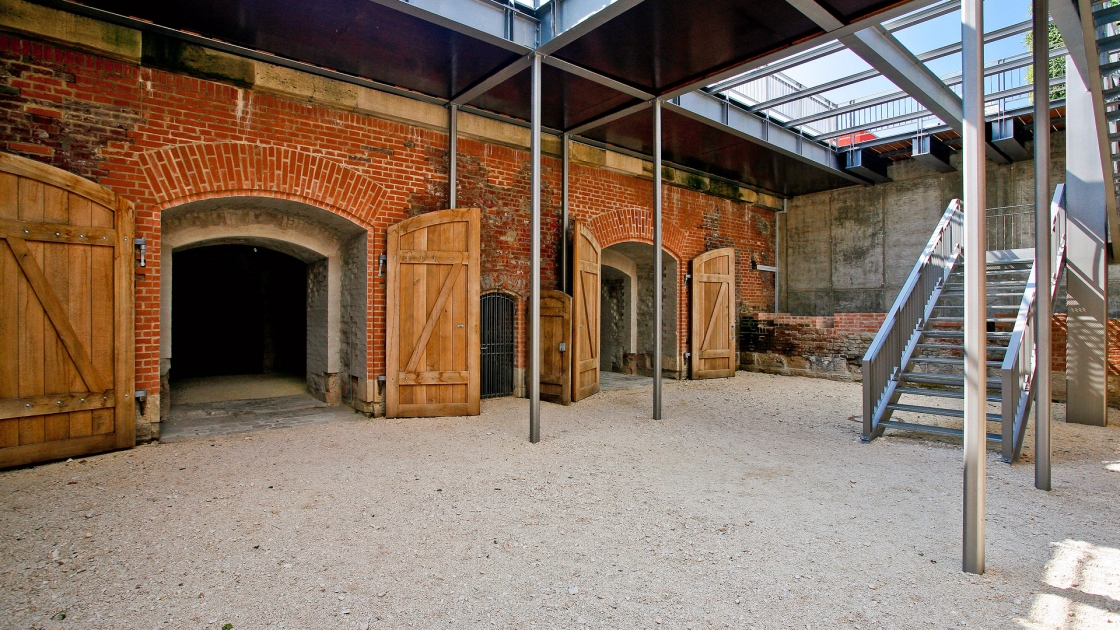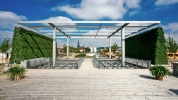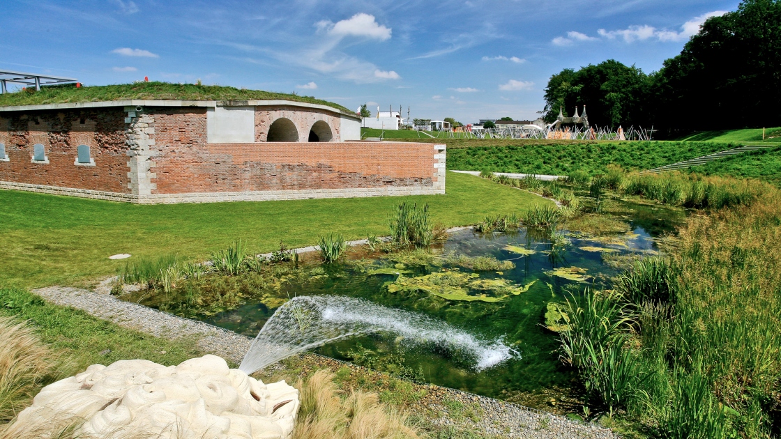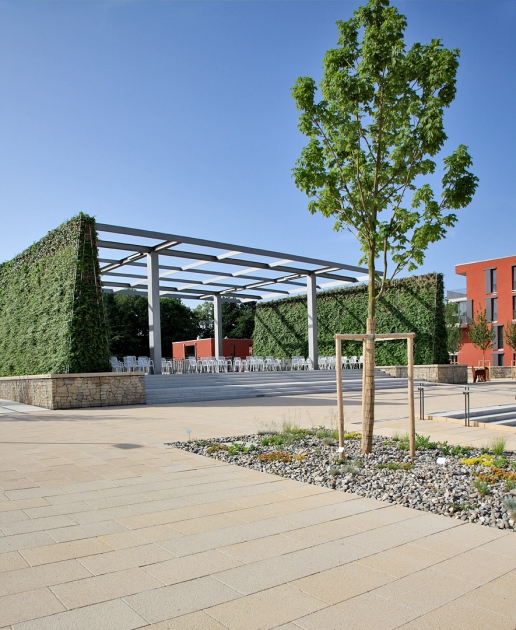 Gestalterisches Vorbild sind historische „Heckentheater“: Die perspektivische Wirkung des Platzes wird durch Gehölzstreifen verstärkt, zusätzlich entstehen geschützte Sitznischen. Den räumlichen Abschluss des Platzes bildet ein Pavillon mit seitlichen, begrünten Wänden. Er stellt zugleich den Übergang zum Zeitfenster mit Aussichtsdeck auf einer Ruine der ehemaligen Stadtbefestigung (Caponniere) dar.