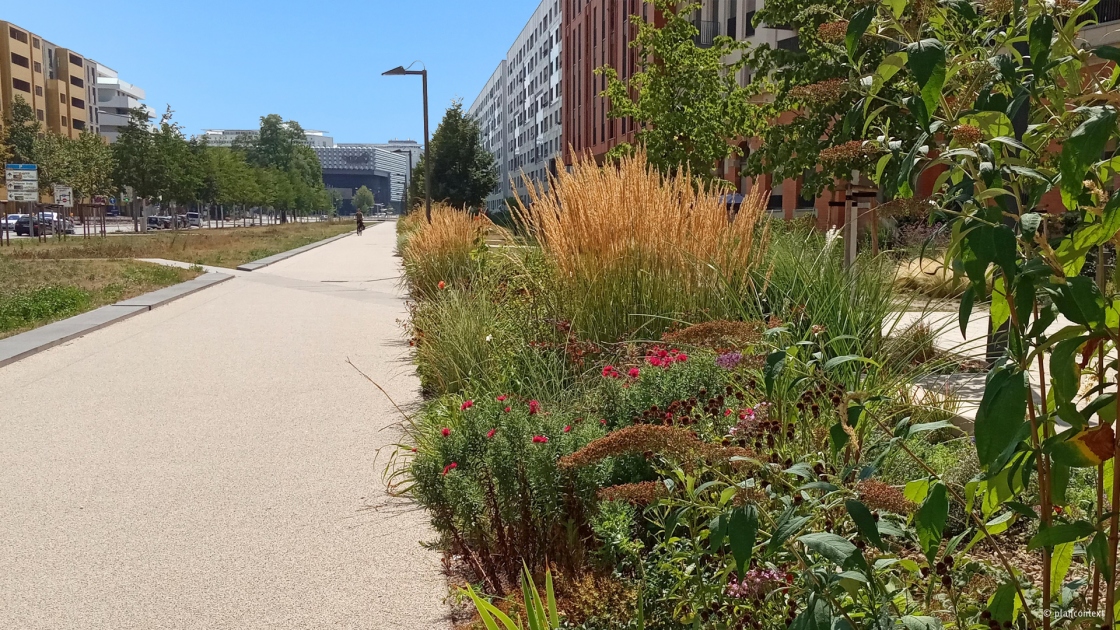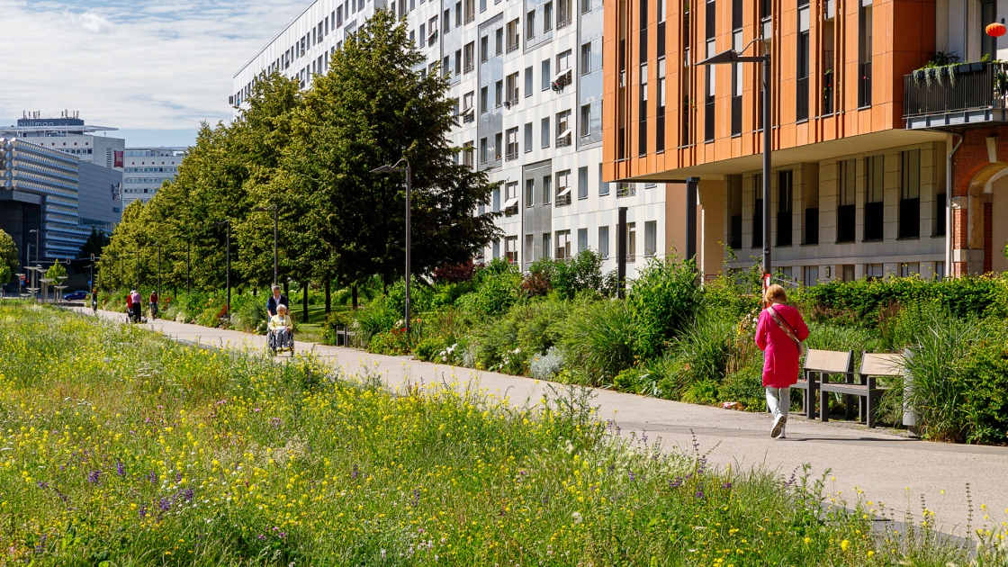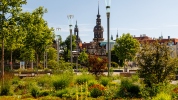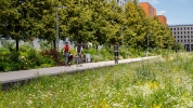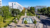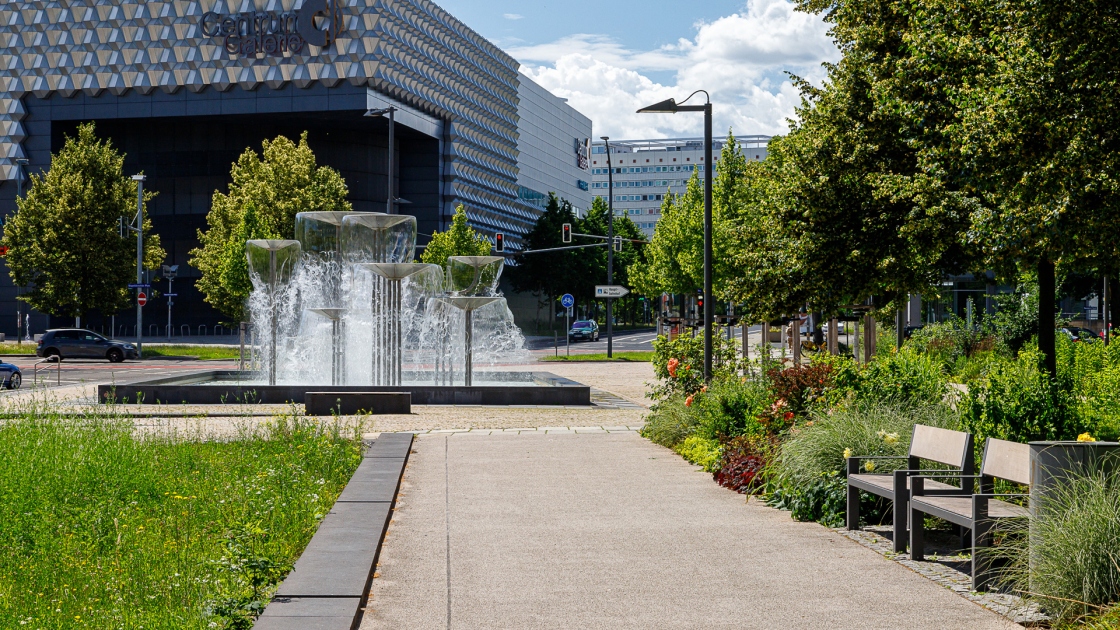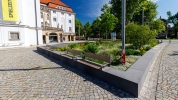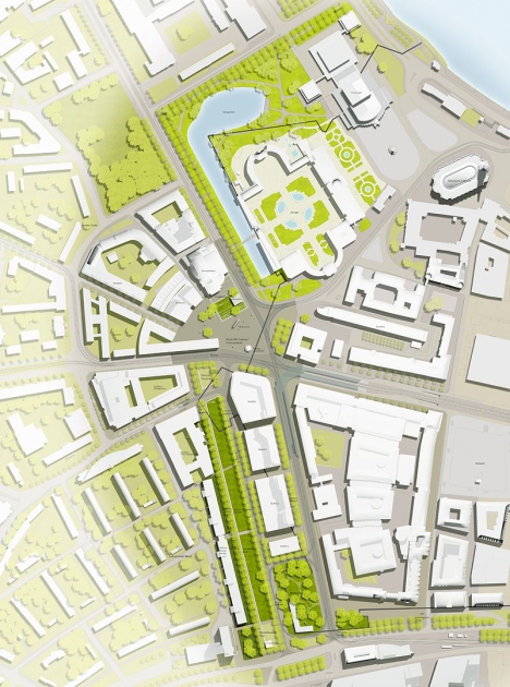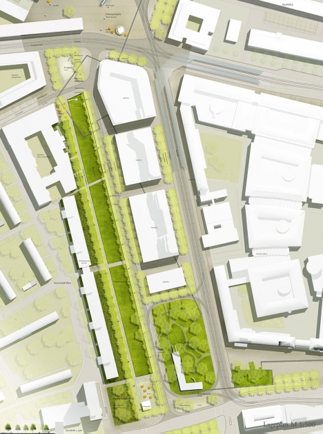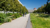 Der westliche Promenadenabschnitt bekommt klare räumliche Kanten, die durch einen großzügigen Granitrahmen und eine umlaufende Platanen-Baumreihe gebildet werden. Der ehemalige Festungsgraben wird durch leicht abgesenkte, parterreartige Wiesenflächen nachvollziehbar.