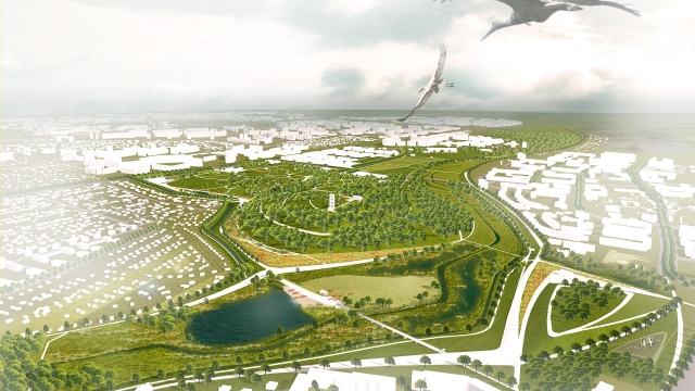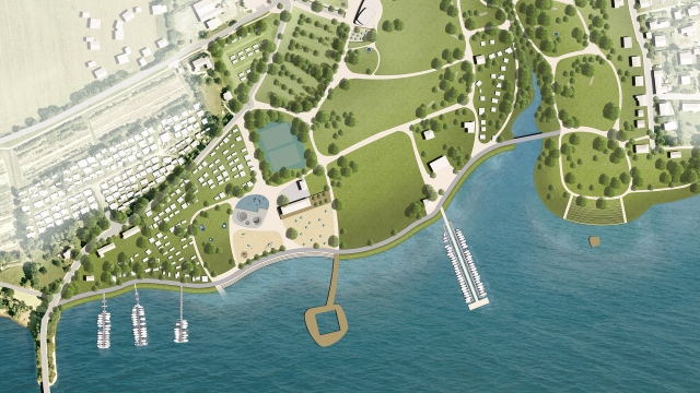 Ausgehend von einem historischen Villenpark wird für das Gelände das Leitbild von Inseln in der Landschaft entwickelt.